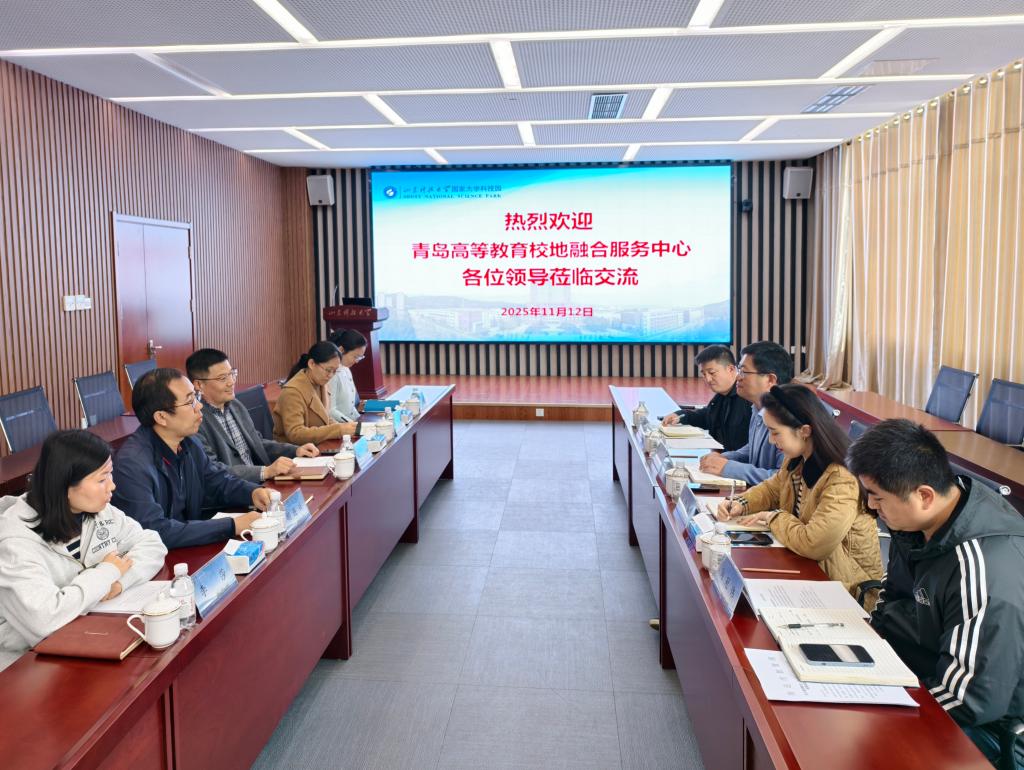 近日,青岛高等教育校地融合服务中心主任刘晓明一行来国家大学科技园调研交流,科技产业管理处处长(国家大学科技园管理办公室主任)薛力进行接待并参加座谈。