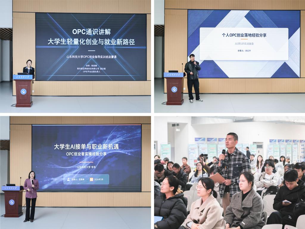 年初,学校对接青岛市“打造北方 OPC 先行示范城”、西海岸新区“打造人工智能 OPC 产业发展标杆集聚区”战略布局,深度融入地方创新生态。今年1月,学校国家大学科技园正式加入青岛市单人AI创业家(OPIE)联盟,3月,受邀参加青岛市西海岸新区 OPC 政策发布会,并获授“山东科技大学科技园 OPC 实训基地”,成为新区首批高校 OPC 人才培育核心载体。