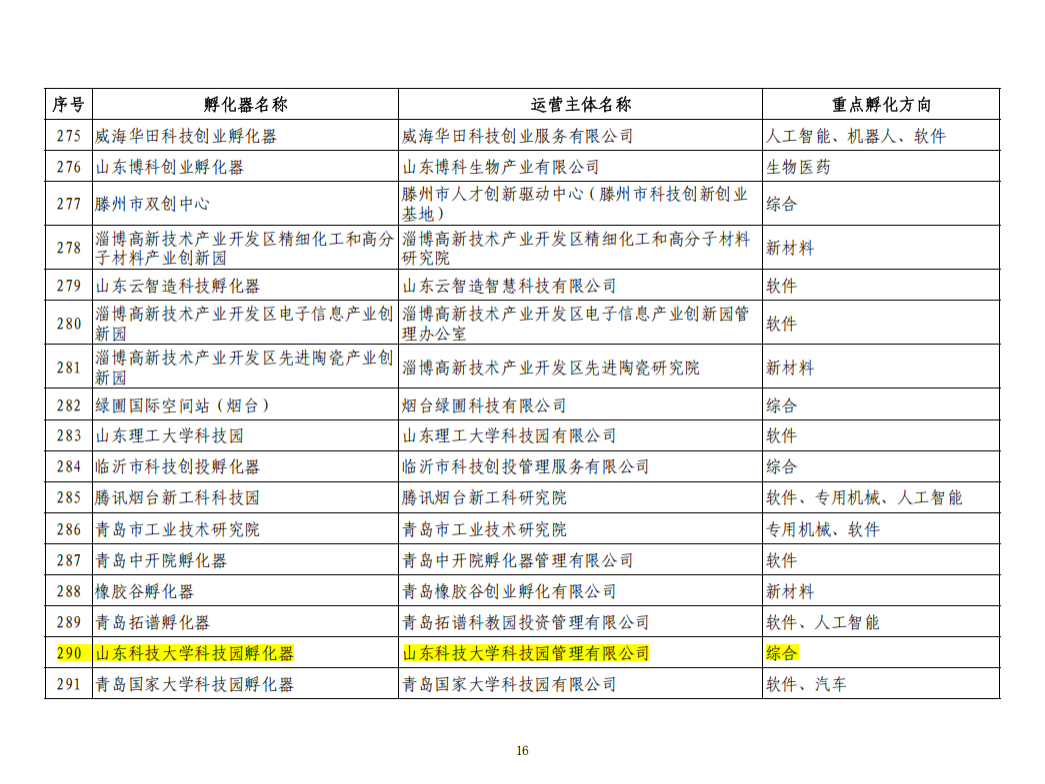 点击:近日,工业和信息化部科技司发布了首批科技型企业孵化器名单,山东科技大学科技园成功获评“标准级孵化器”。此次评价是孵化器管理职能由科技部划转工信部后的首次认定,体现孵化器行业发展的新形势、新要求,核心标准从“量”转向“质”,更加注重产业结合与专业服务能力。山东省共有34家孵化器入选,其中青岛市占6席。